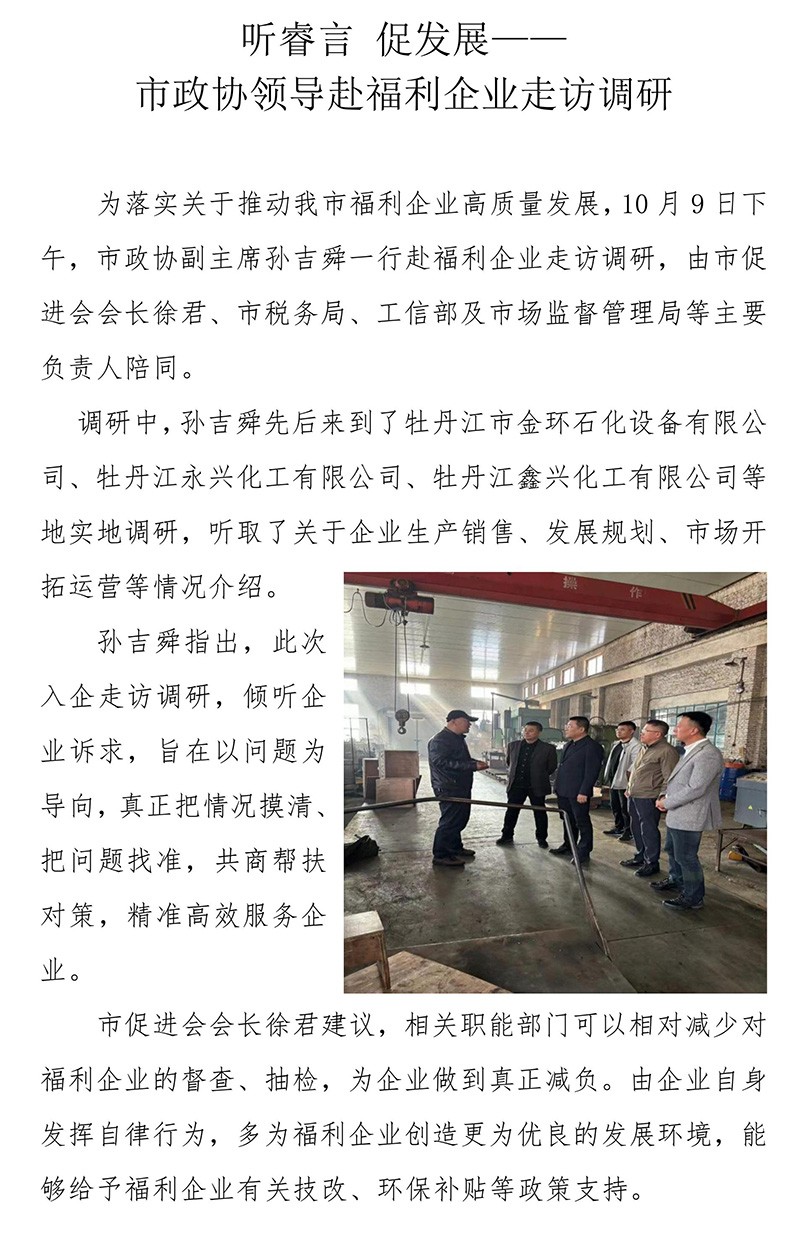 聽睿言 促發(fā)展——市政協(xié)領(lǐng)導(dǎo)赴福利企業(yè)走訪調(diào)研