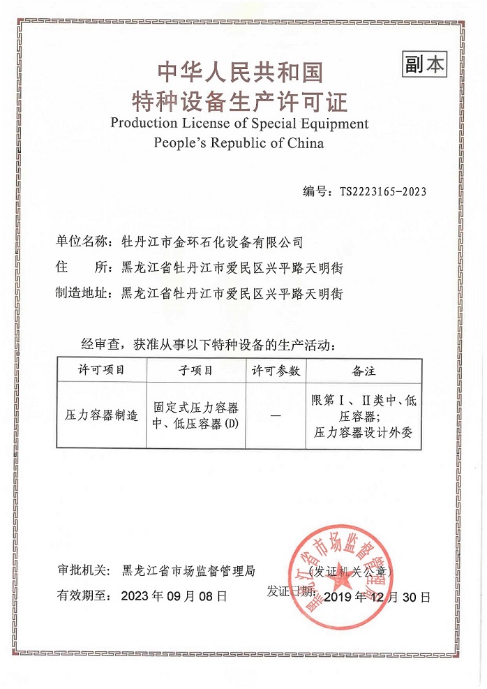 Mudanjiang Jinhuan Petrochemical Equipment CO.,LTD 牡丹江市金環(huán)石化設(shè)備有限公司 版權(quán)所有 www.fdlguo.com