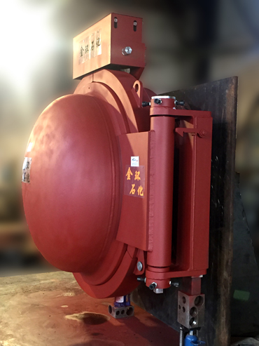 快開(kāi)盲板是用于壓力管道或壓力容器的圓形開(kāi)口上的一種機(jī)械裝置。一般由筒體法蘭、頭蓋、勾圈或卡箍、密封圈、安全聯(lián)鎖機(jī)構(gòu)、開(kāi)閉機(jī)構(gòu)、轉(zhuǎn)臂及短節(jié)(需要時(shí))等部件構(gòu)成。
