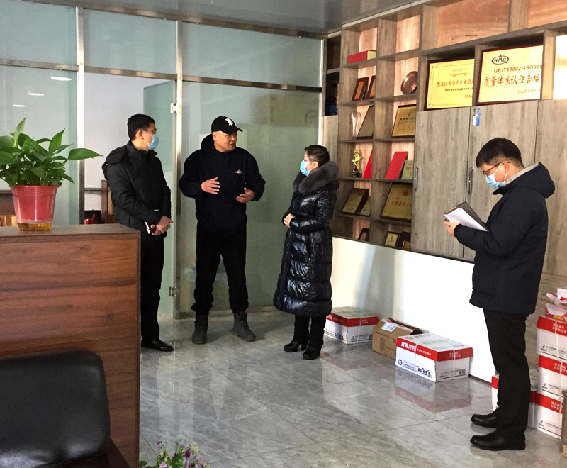 2021年12月01日,牡丹江市愛(ài)民區(qū)人大何主任(圖左1),協(xié)同愛(ài)民區(qū)營(yíng)商局主要領(lǐng)導(dǎo)(圖右1),蒞臨我公司考察企業(yè)營(yíng)商環(huán)境,幫扶企業(yè)解決實(shí)際困難。